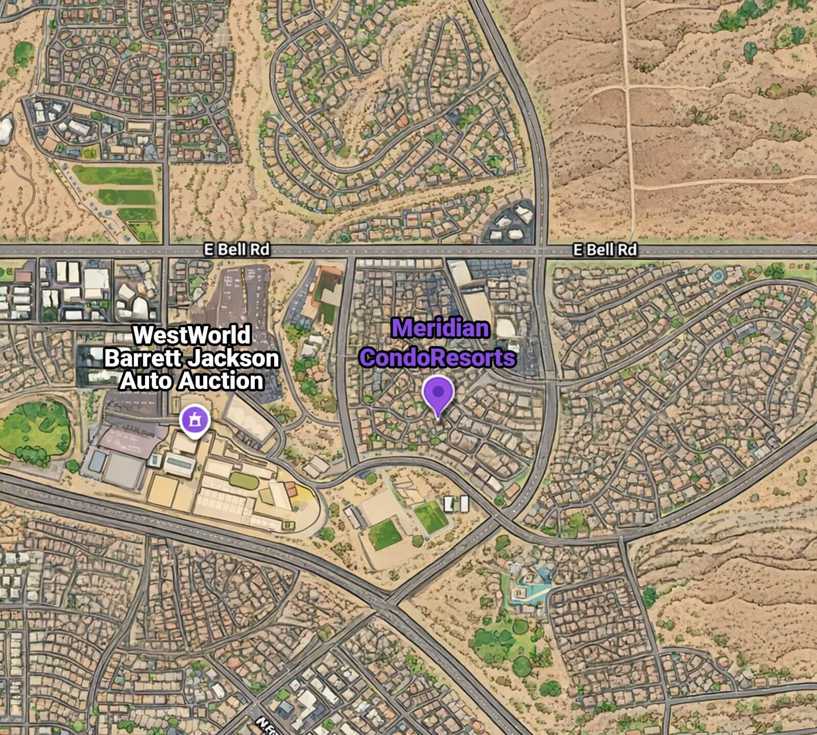 Enhance your Barrett-Jackson experience by staying at Meridian CondoResorts. Our luxurious accommodations provide spacious condo-style living with resort amenities, perfect for relaxing after a day at the auction. Conveniently located near WestWorld and other Scottsdale attractions, Meridian CondoResorts is your ideal home base for enjoying all the area offers.